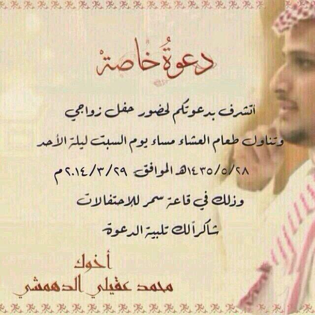 د عـــــوة ل يس ت ك ــكل الد عوات فهذي دعوة من قلوب صافيه نقيه من أسرة 00000000 وأسرة 000000000 لتشاركوها الاحتفاء بميلاد اسره جديده تنشأعلى الخير والموده والرحمه. نسطرها على بطاقة الدعوه. صيغة دعوة لحضور حفل عشاء حفل العشاء أحد المناسبات العائلية الخامة والذي يتميز بأجوائه المميزة وتعتبر صيغة الدعوة من أهم خطوات التحضير لحفلات العشاء حيث أنها تعكس للمدعويبن مشاعرنا ورغبتنا في حضورهم ومشاركتنا. بطاقه دعوه خاصه للي اسمه شادي.