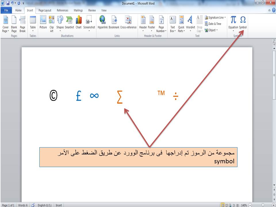 إدراج العلامات والرموز Symbols فى برنامج الوورد Microsoft Word مدرسة الويب Web School