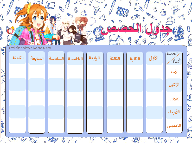 جدول حصص الاسبوعي المدرسي جاهز للطباعة شكل 5 On Student Show