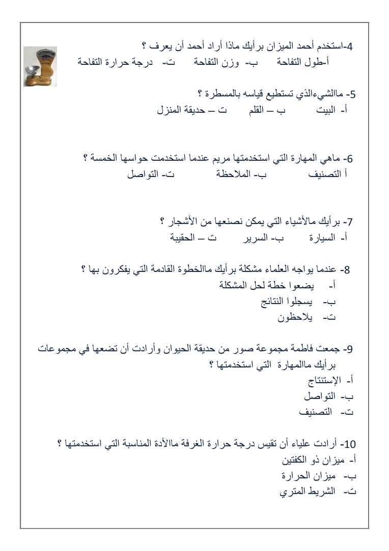 ورقة عمل درس الـمهارات الـعلمية الـصف الـثاني الـفصل الـاول2019 2018 العلوم والتكنولوجيا
